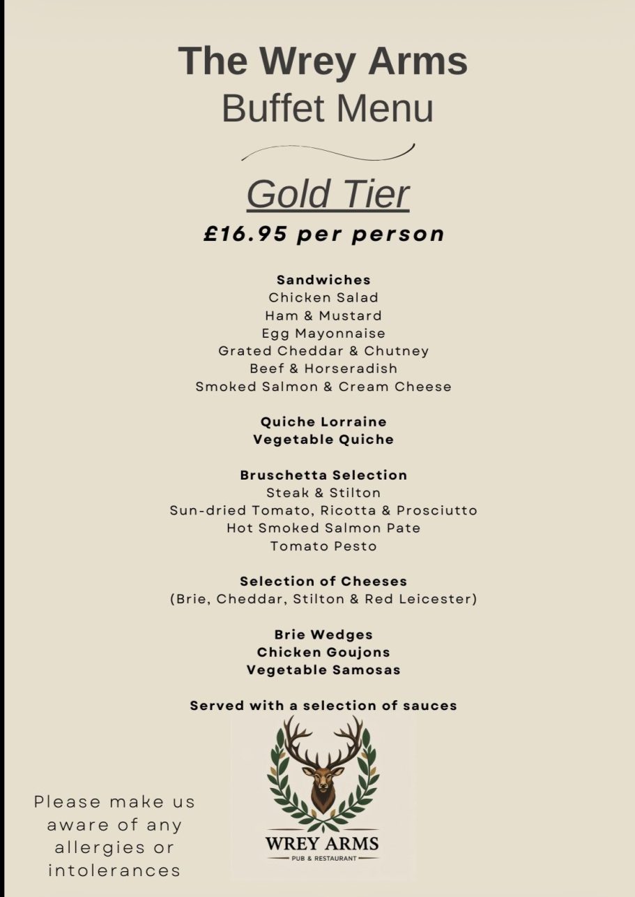 At the Wrey, great food is at the heart of everything we do. Whether you're starting your day with a hearty breakfast, joining us for a relaxed lunch, or planning a special celebration with our event catering, we're proud to serve dishes that bring people together.